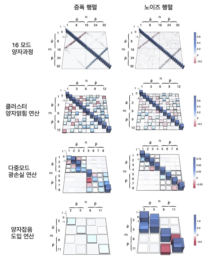 핵심은 양자연산을 ‘증폭 행렬’과 ‘잡음 행렬’ 두 가지 틀로 분리해 해석하는 방식이다. 비선형 광학 과정으로 인해 빛의 양자 상태가 어떻게 증폭되고 변화했는지를 증폭 행렬로, 외부 환경에 따른 손실·잡음이 얼마나 섞였는지를 잡음 행렬로 각각 따로 분석한다. 이를 통해 이상적 연산과 비이상적 현실적 변화를 독립적으로 추적할 수 있는 양자 상태 지도가 완성됐다.