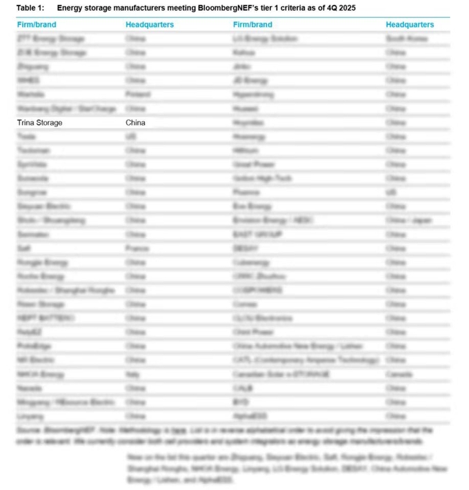 [더테크 이승수 기자] 글로벌 에너지저장(ESS) 솔루션 기업 트리나스토리지가 블룸버그NEF 2025년 4분기 ‘티어 1’ 제조사 명단에 8분기 연속 이름을 올리며, 업계 최상위권의 금융 신뢰도와 기술 경쟁력을 다시 한번 입증했다.