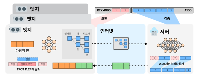 KAIST는 전기및전자공학부 한동수 교수 연구팀이 데이터센터 외부의 저렴한 소비자급 GPU를 활용해 LLM 추론 비용을 크게 낮출 수 있는 기술 ‘스펙엣지(SpecEdge)’를 개발했다고 29일 밝혔다.