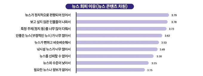 보고서는 추천 알고리즘과 생성형 AI가 이용자의 기존 선호를 강화하는 방식으로 정보 노출을 설계하고 있으며, 이 과정에서 ‘필터버블’과 ‘에코챔버’ 현상이 구조적으로 고착화된다고 분석했다. 특히 정치 영역에서는 특정 이념 성향이 반복적으로 증폭되며 뉴스 회피와 정치적 불신을 심화시키고, 성별 영역에서는 고정관념적 콘텐츠가 남녀 이용자에게 차별적으로 노출되면서 사회적 갈등을 확대하는 양상이 확인됐다고 지적했다.