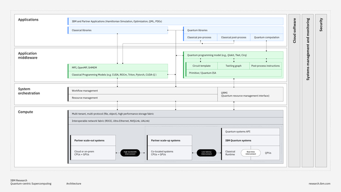 [더테크 서명수 기자] IBM이 양자 컴퓨팅을 기존 슈퍼컴퓨팅 환경에 실질적으로 적용하기 위한 업계 최초의 ‘양자 중심 슈퍼컴퓨팅’ 참조 아키텍처를 13일 공개했다. 이번 아키텍처는 양자 프로세서(QPU)가 중앙처리장치(CPU), 그래픽처리장치(GPU)와 함께 온프레미스, 연구기관, 클라우드 등 다양한 환경에서 동시에 활용될 수 있도록 설계된 통합 컴퓨팅 모델이다.
